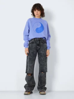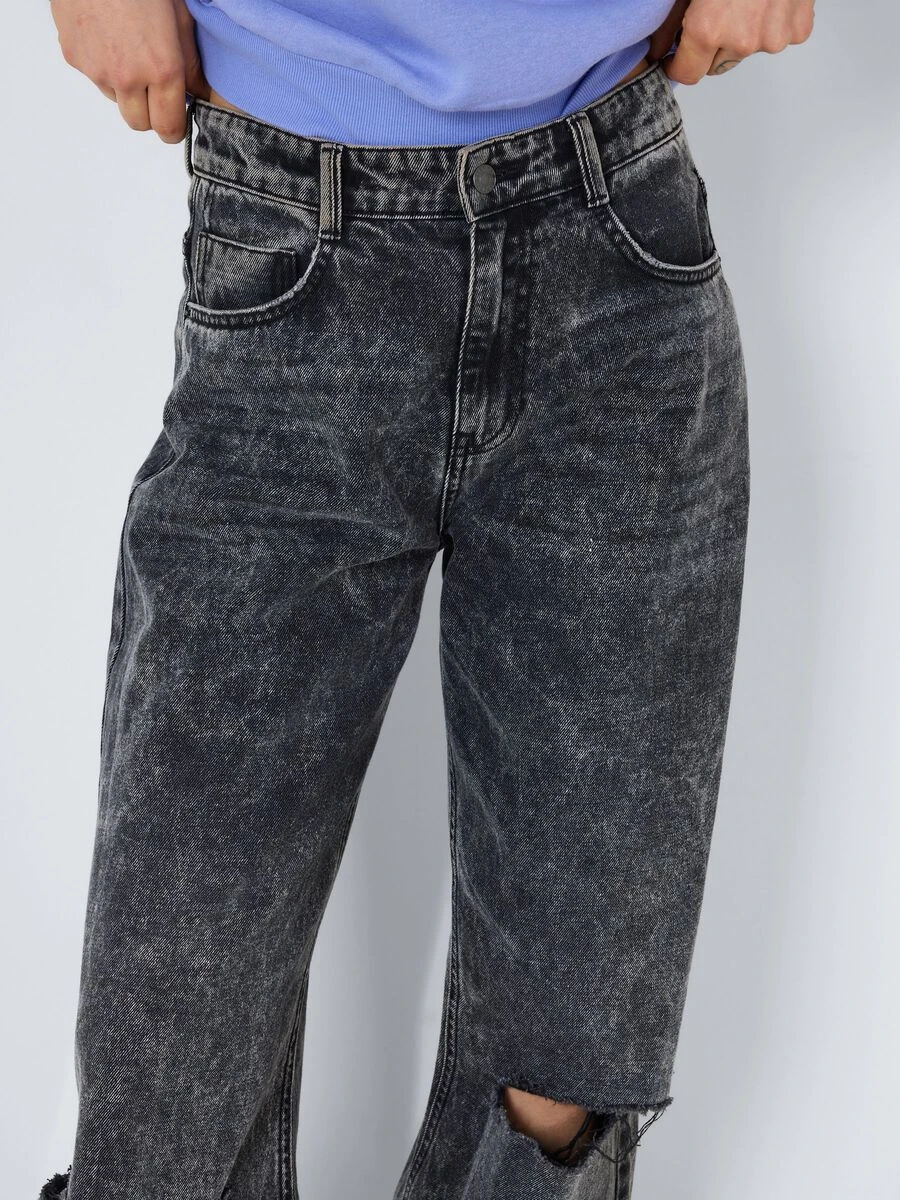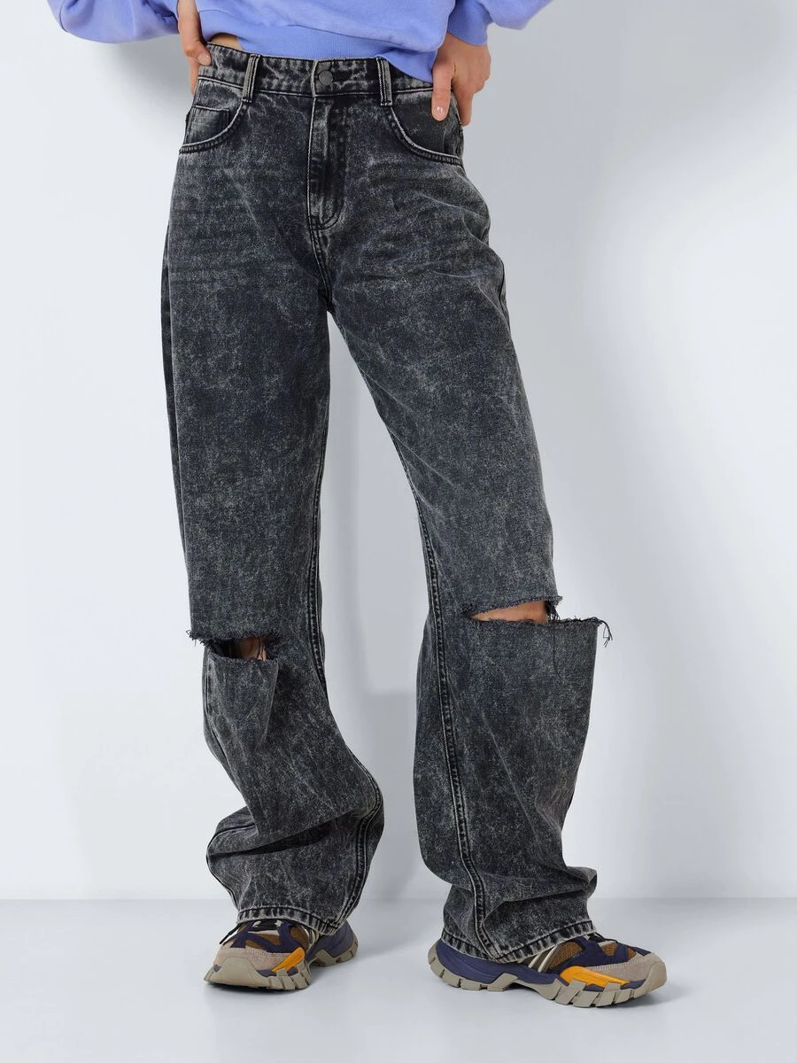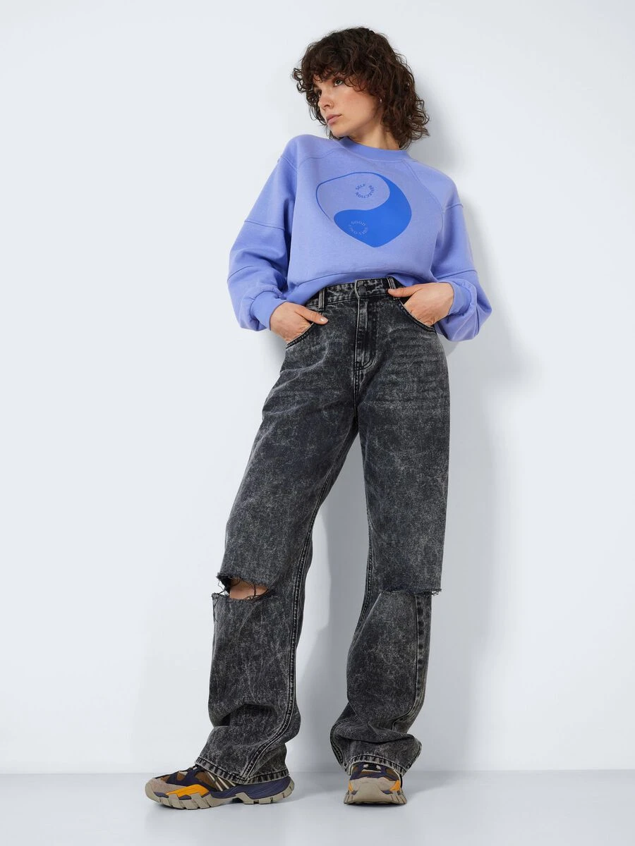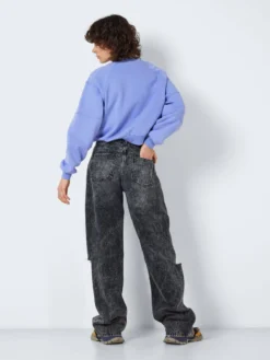 The high waisted NMJOSIE jeans are inspired by the 90’s baggy jeans. They are made from a non-stretchy cotton material and has a relaxed fit. Choose your regular size for a high-waist fit or size them up 1-2 sizes and wear them pulled down for a more baggy and streetwear inspired fit.